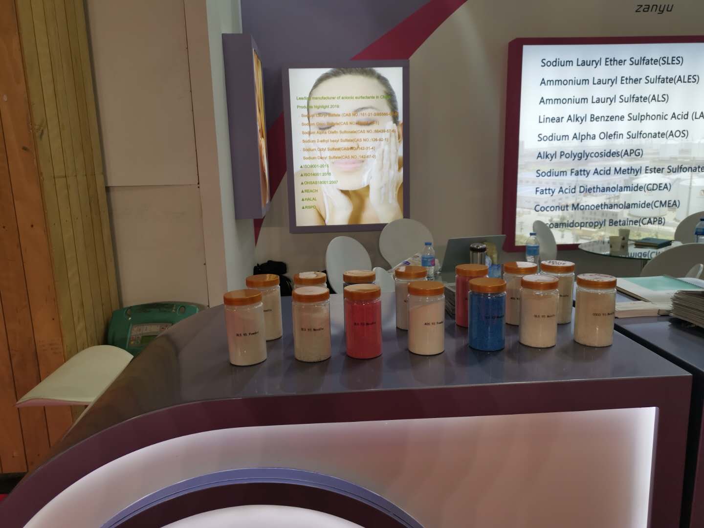 The export department of Shanghai youyang industry co., LTD. Participated in the in-cosmetics Amsterdam exhibition of cosmetics ingredients in Europe in 2019.